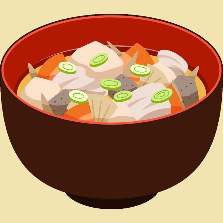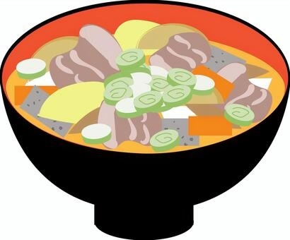 同時にニンジン、ジャガイモ、タマネギ、ホウレンソウ、シイタケを煮て、豚肉を投入。熱々ご飯と豚汁で、身体が暖まった。