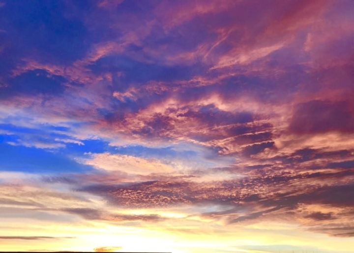日が短くなって、日課のハイキングの途中で日が沈み、その後急に暗くなる。高い雲は茜色、低い雲は灰色の空を堪能しながら歩いていた。