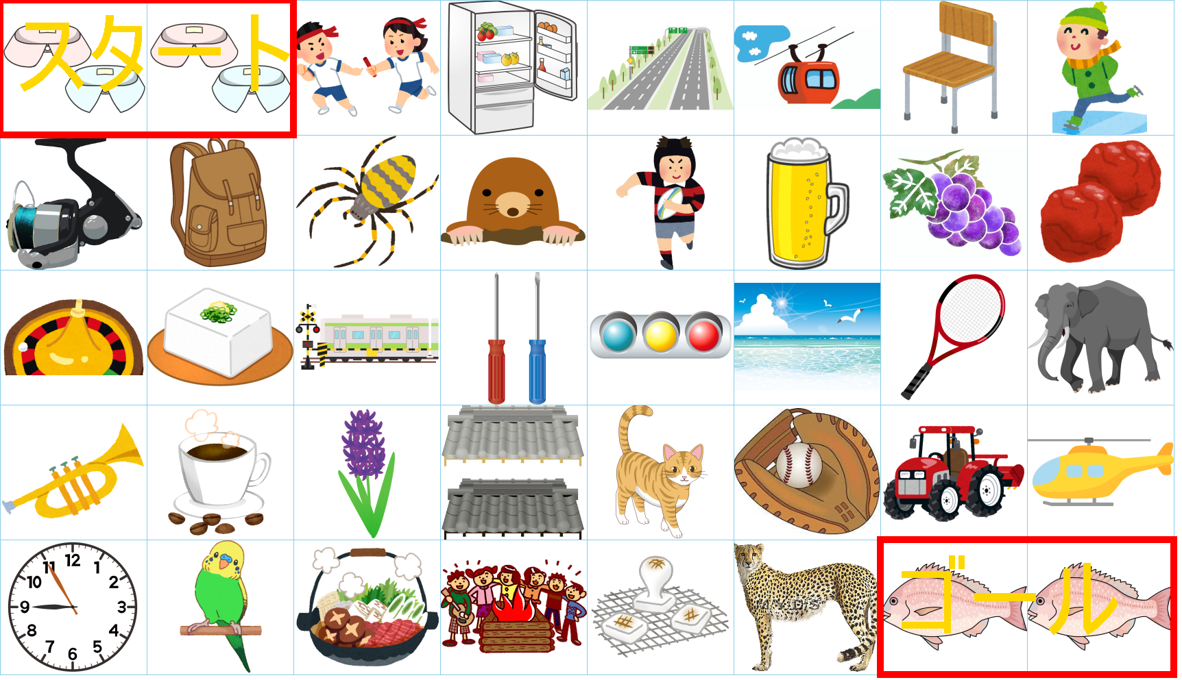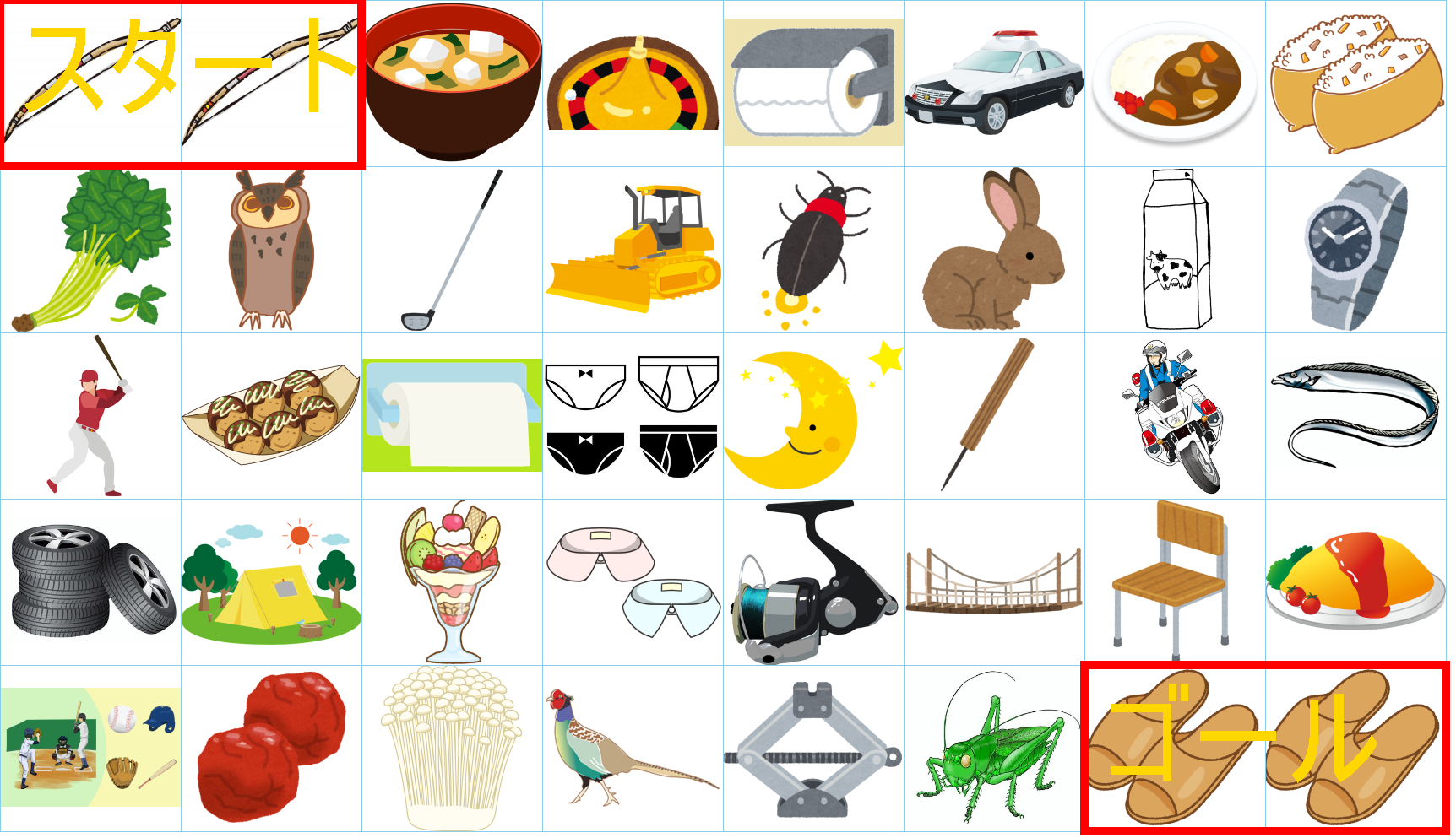 心配になって久しぶりにコンピュータにしりとり問題を作ってもらう。これは簡単だ(*^-^*)