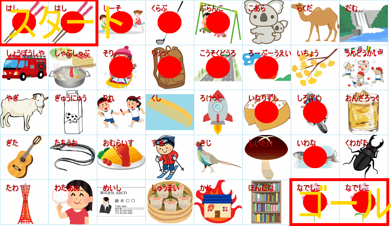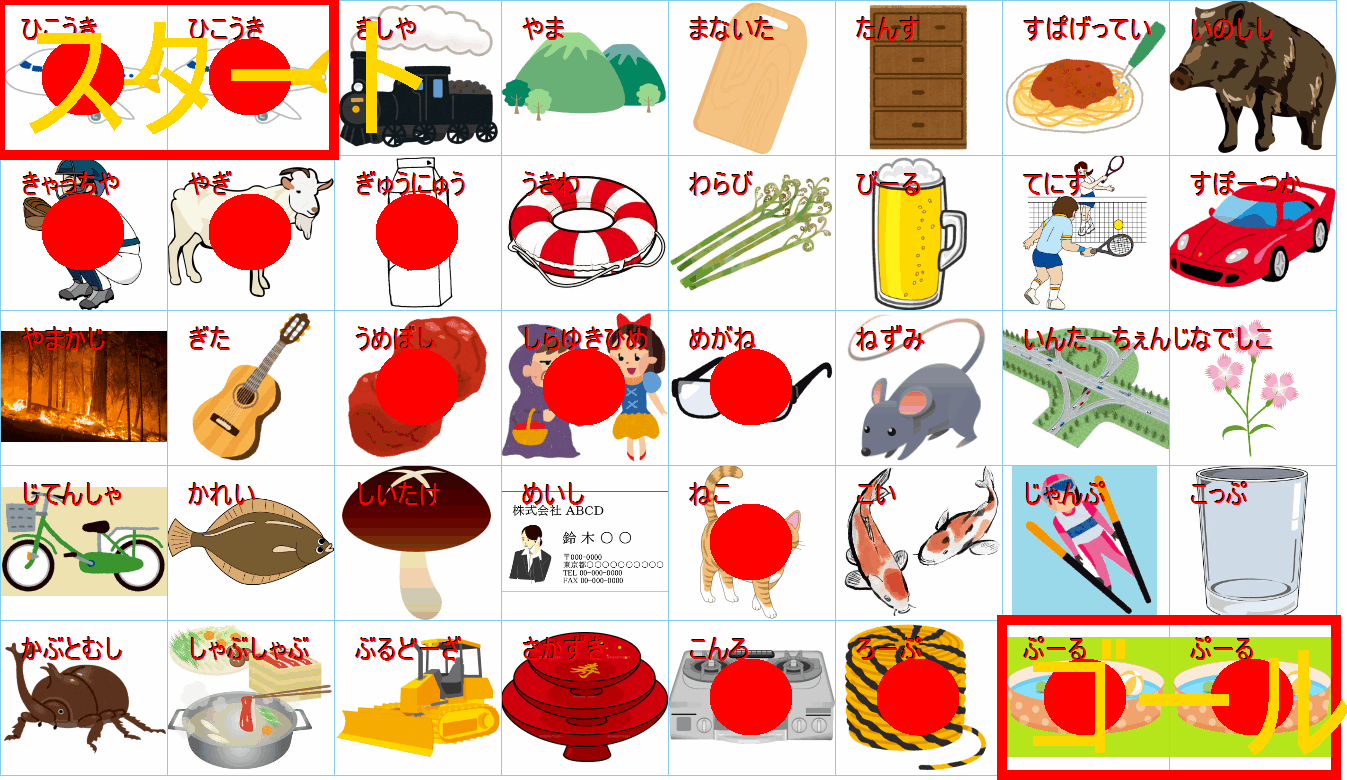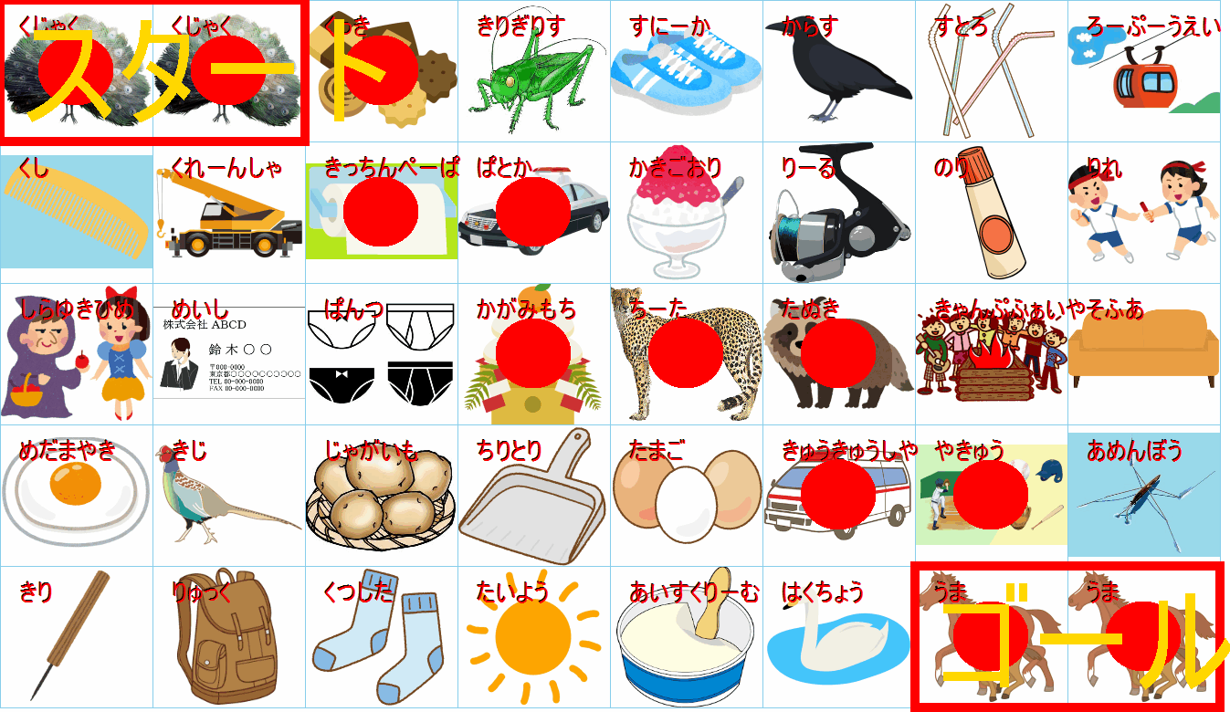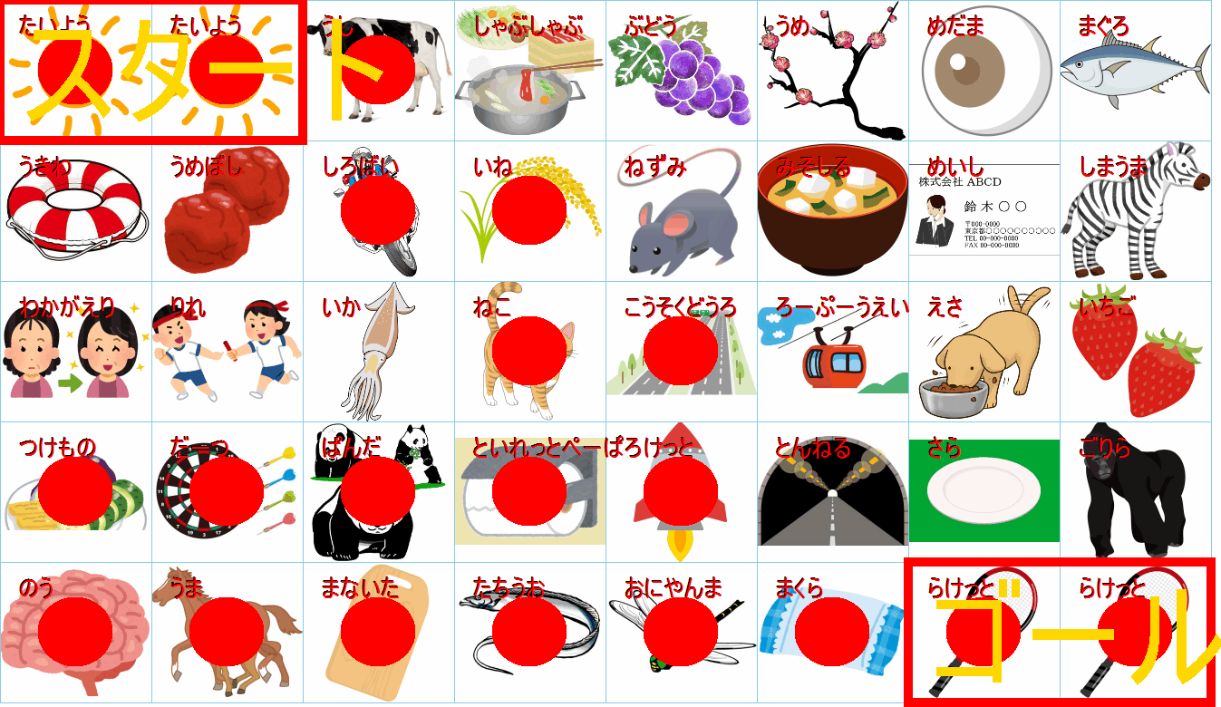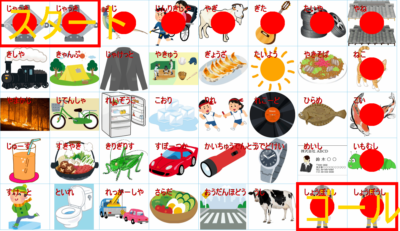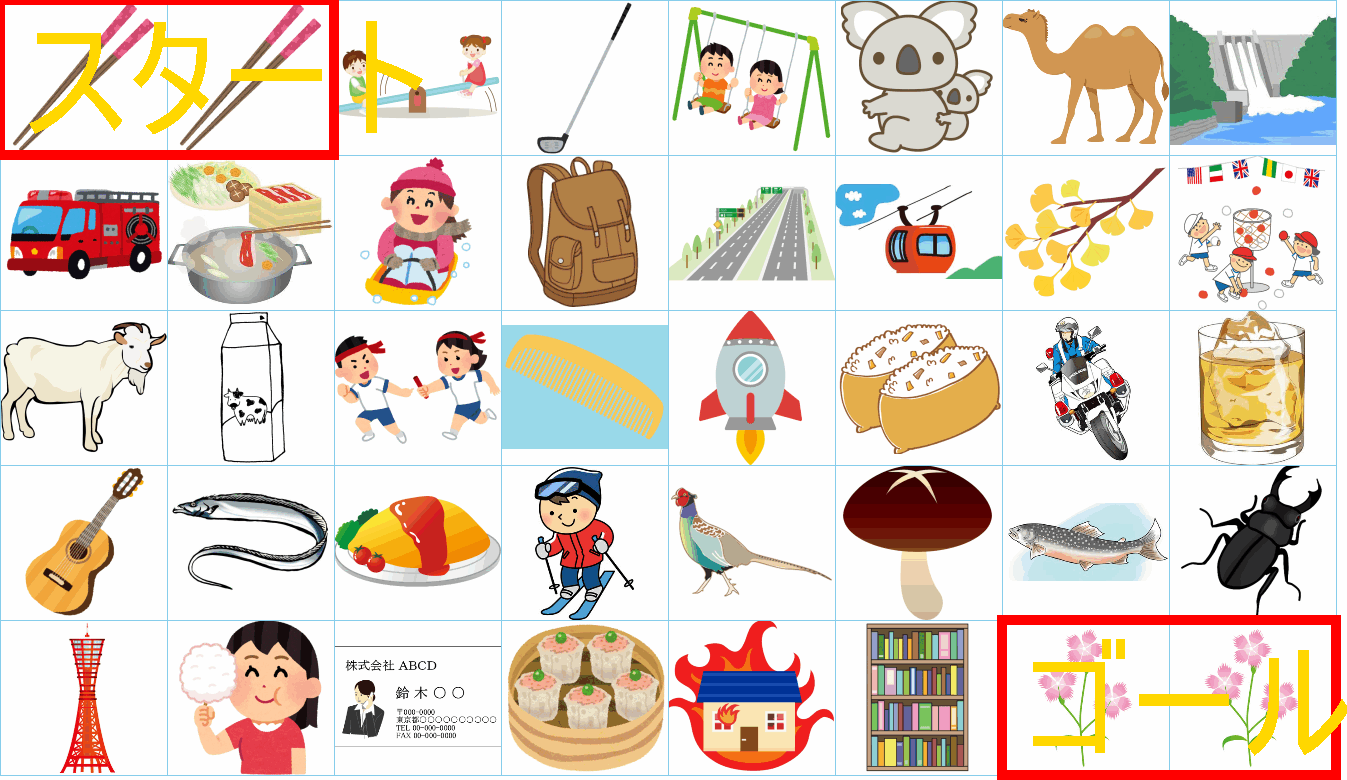 これは非常に面白い挑戦ですね!画像にあるイラストを「しりとり」でつなぎながら、左上の「スタート」から右下の「ゴール」まで一本道を作るパズルですね。