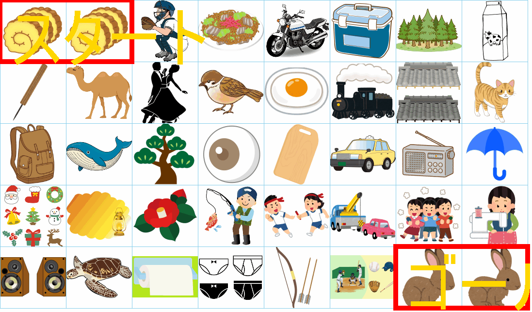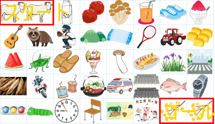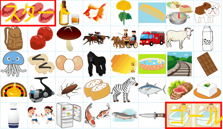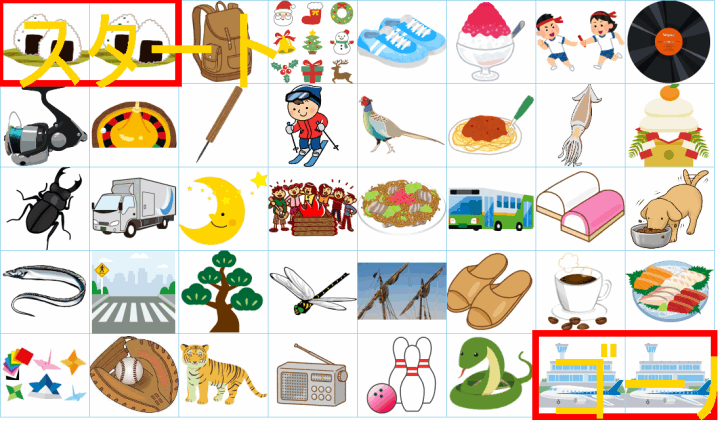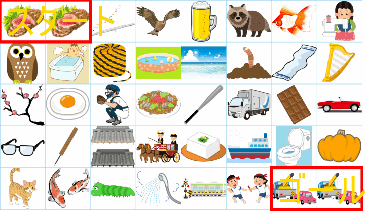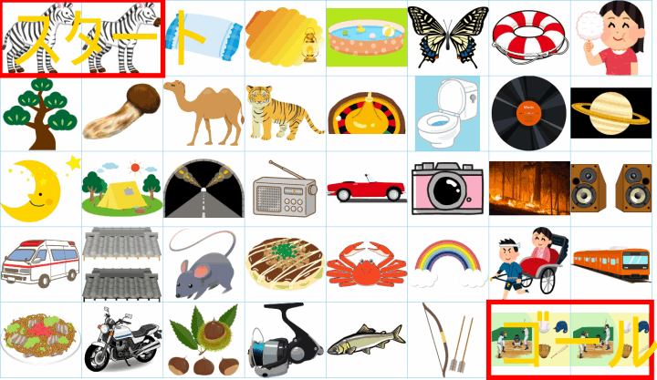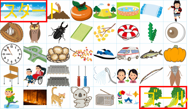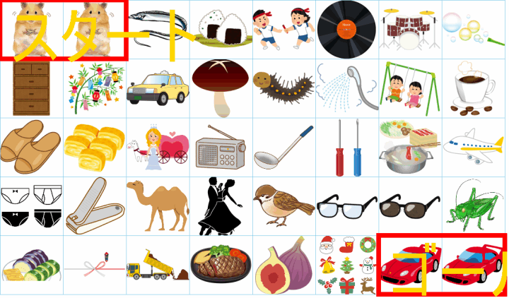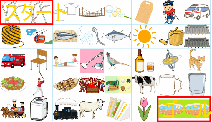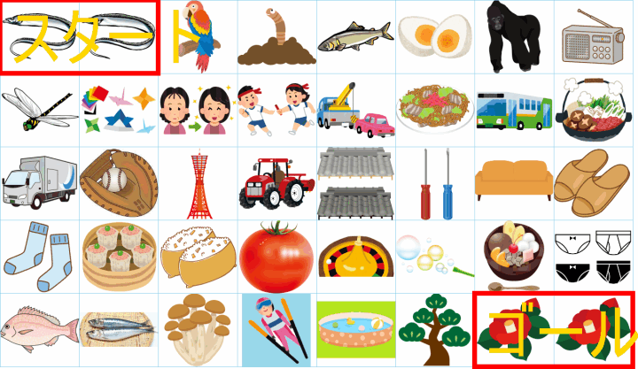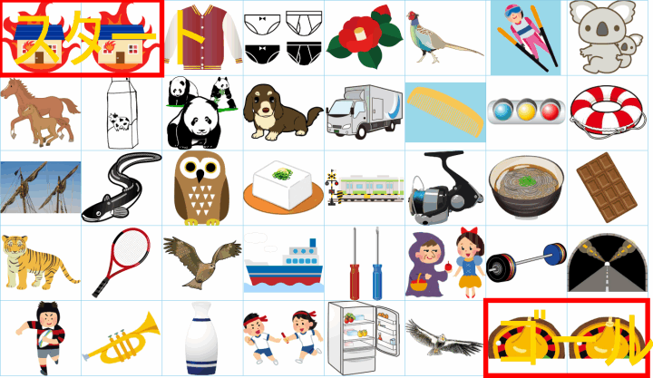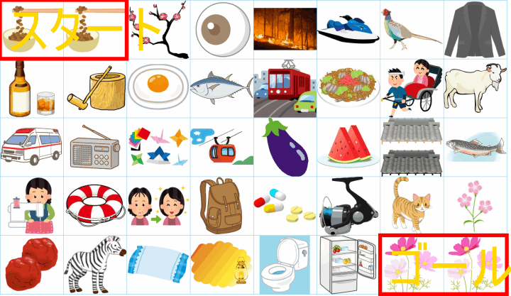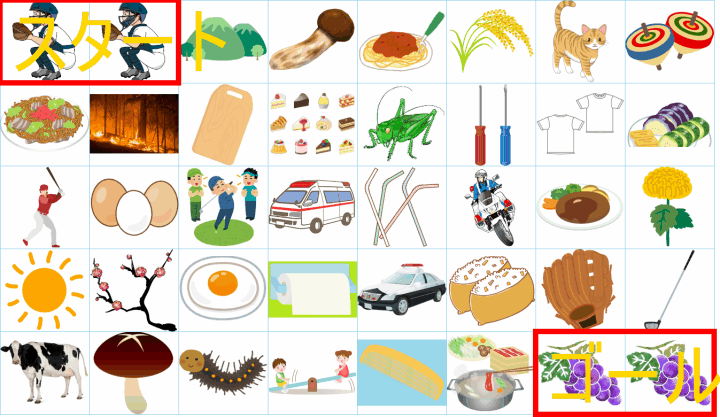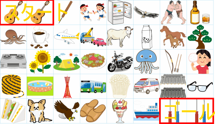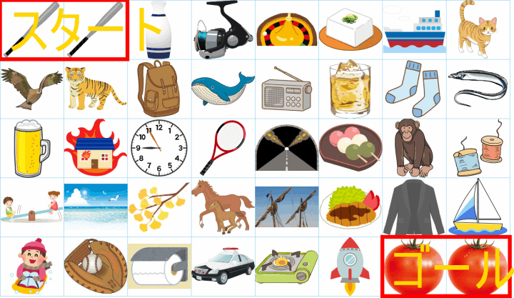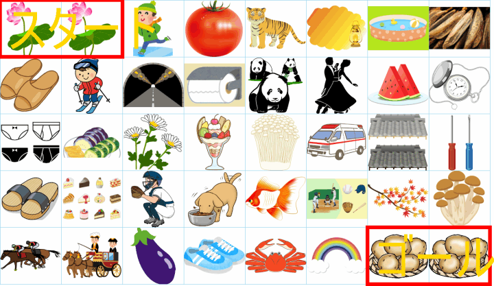 ルールは同じです。絵をご覧ください。スタートからゴールまでの道を、言葉の列として、答えてみてください。
