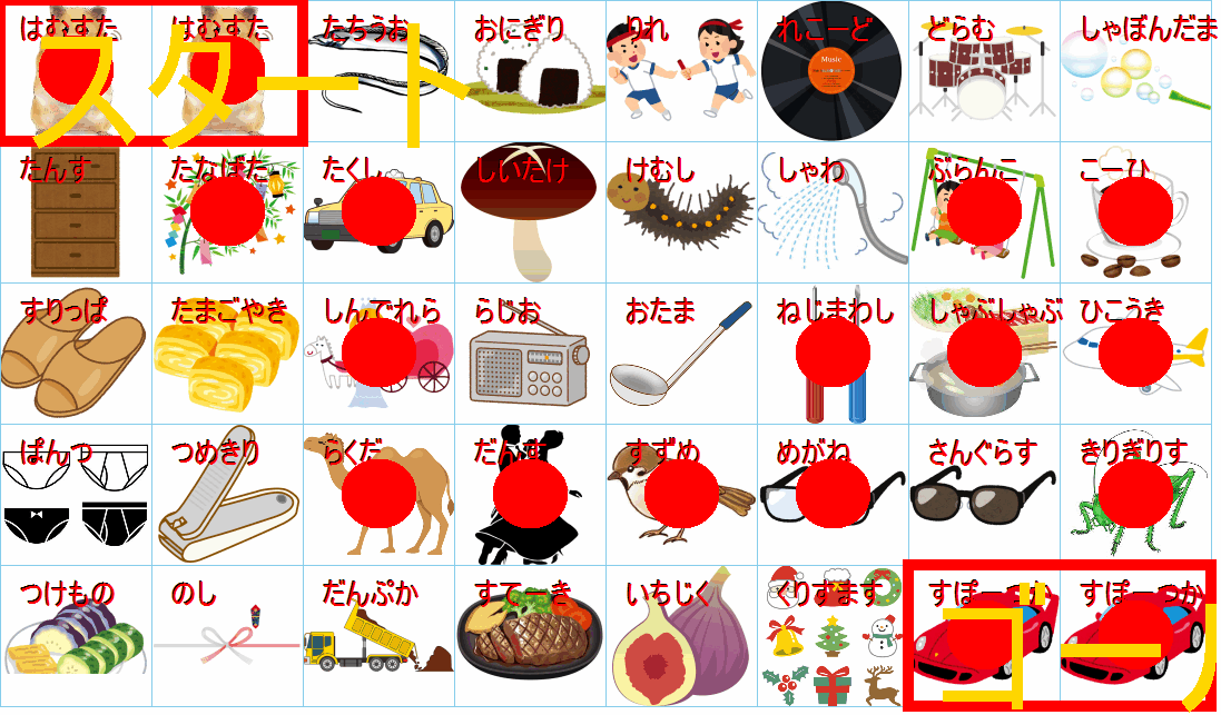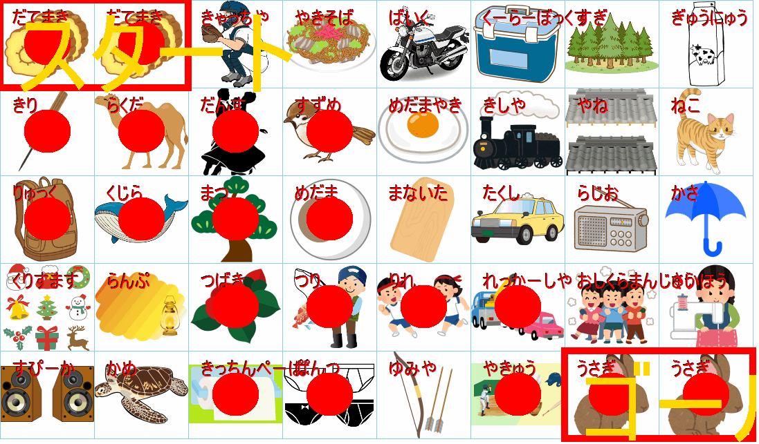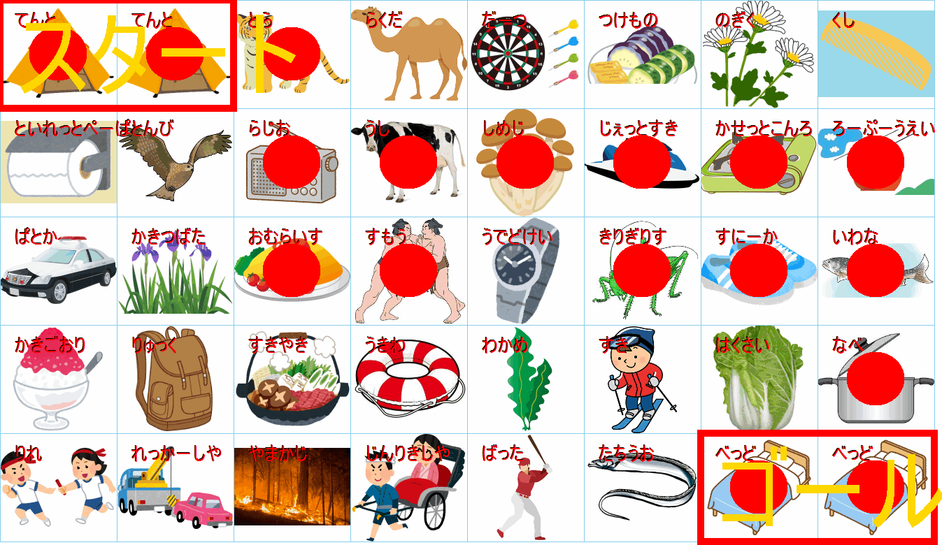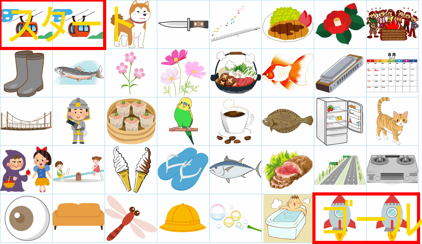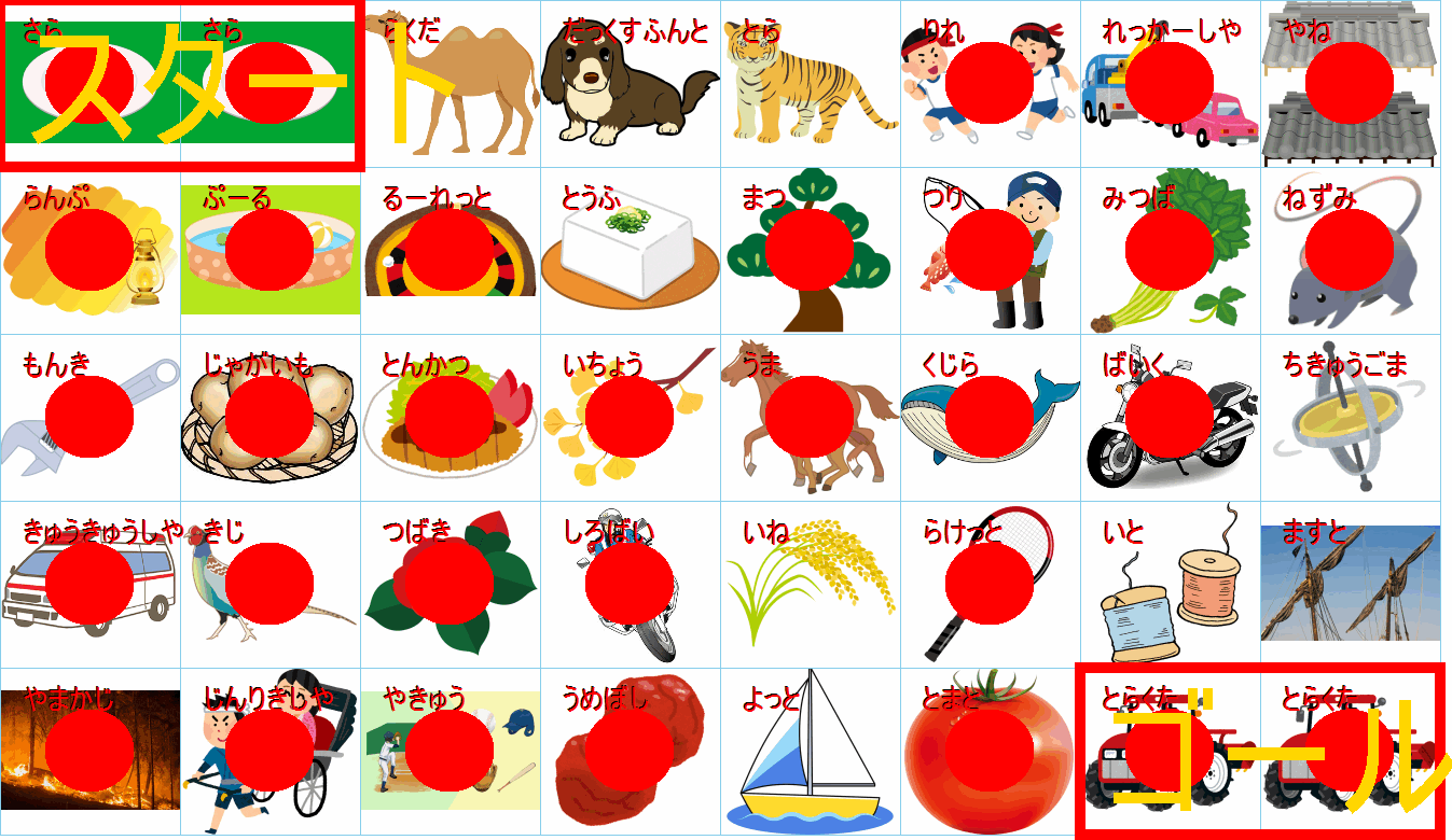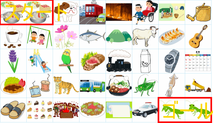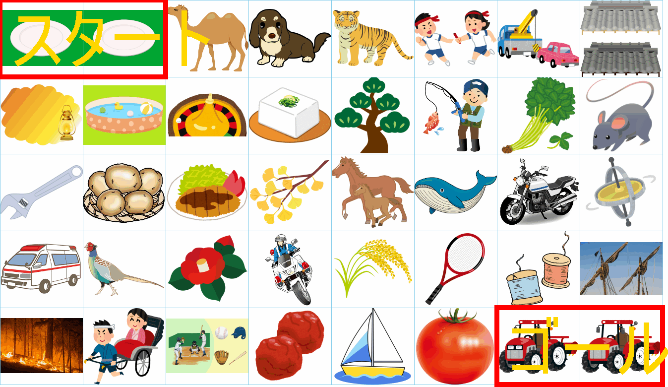 ルールは同じです。絵をご覧ください。スタートからゴールまでの道を、言葉の列として、答えてみてください。