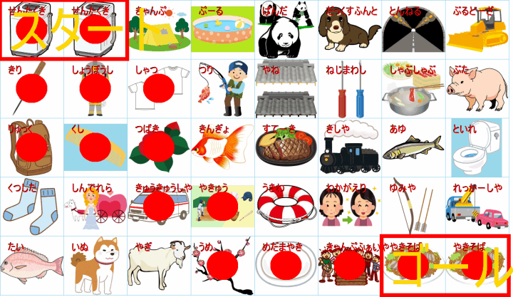 「キャンプファイヤー(あー)」→「野球(やきゅう)」という流れになりそうです。
